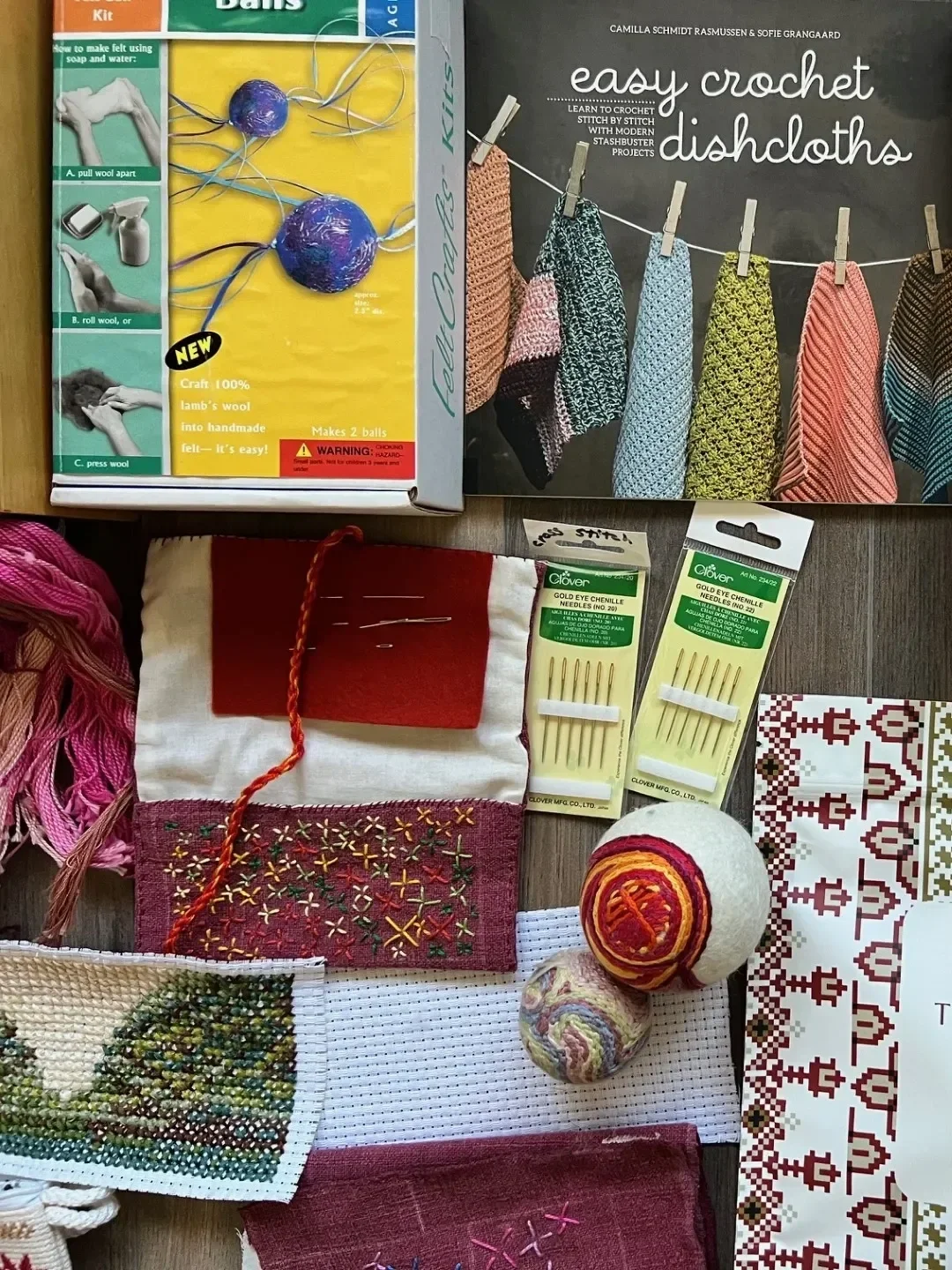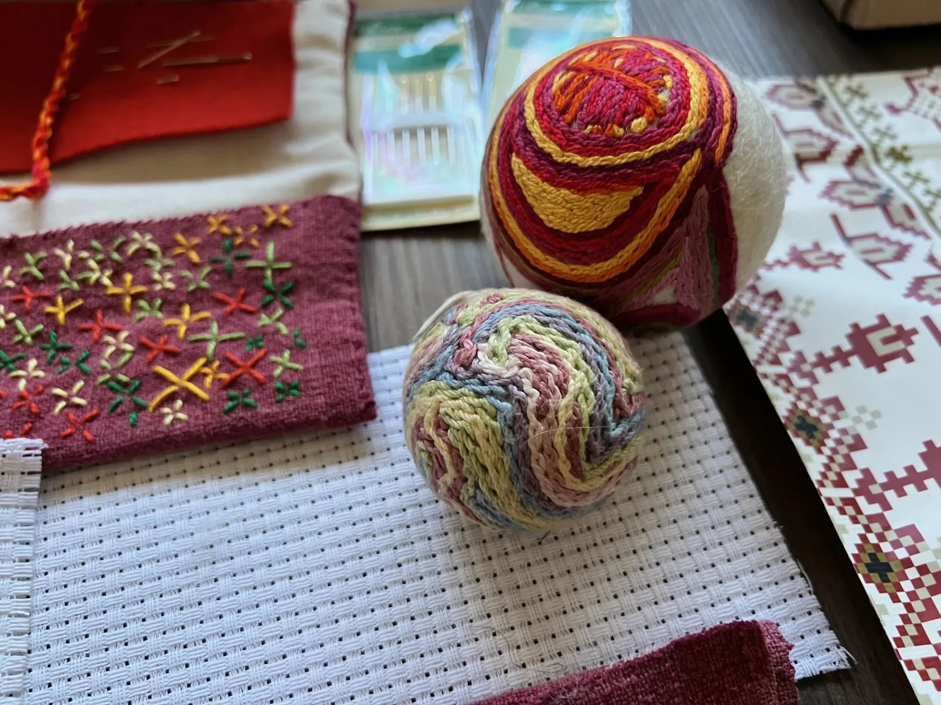 Handwork in Waldorf schools takes as much care in choosing the work that will be done as choosing the lessons. In some cases the lessons and the handwork coordinate beautifully. Cross Stitch and embroidery are the main projects for this grade. Felting a ball is the first step to an embroidered ball. This project may take weeks to months to complete. Cross stitch is a beautiful skill to develop at this age.
