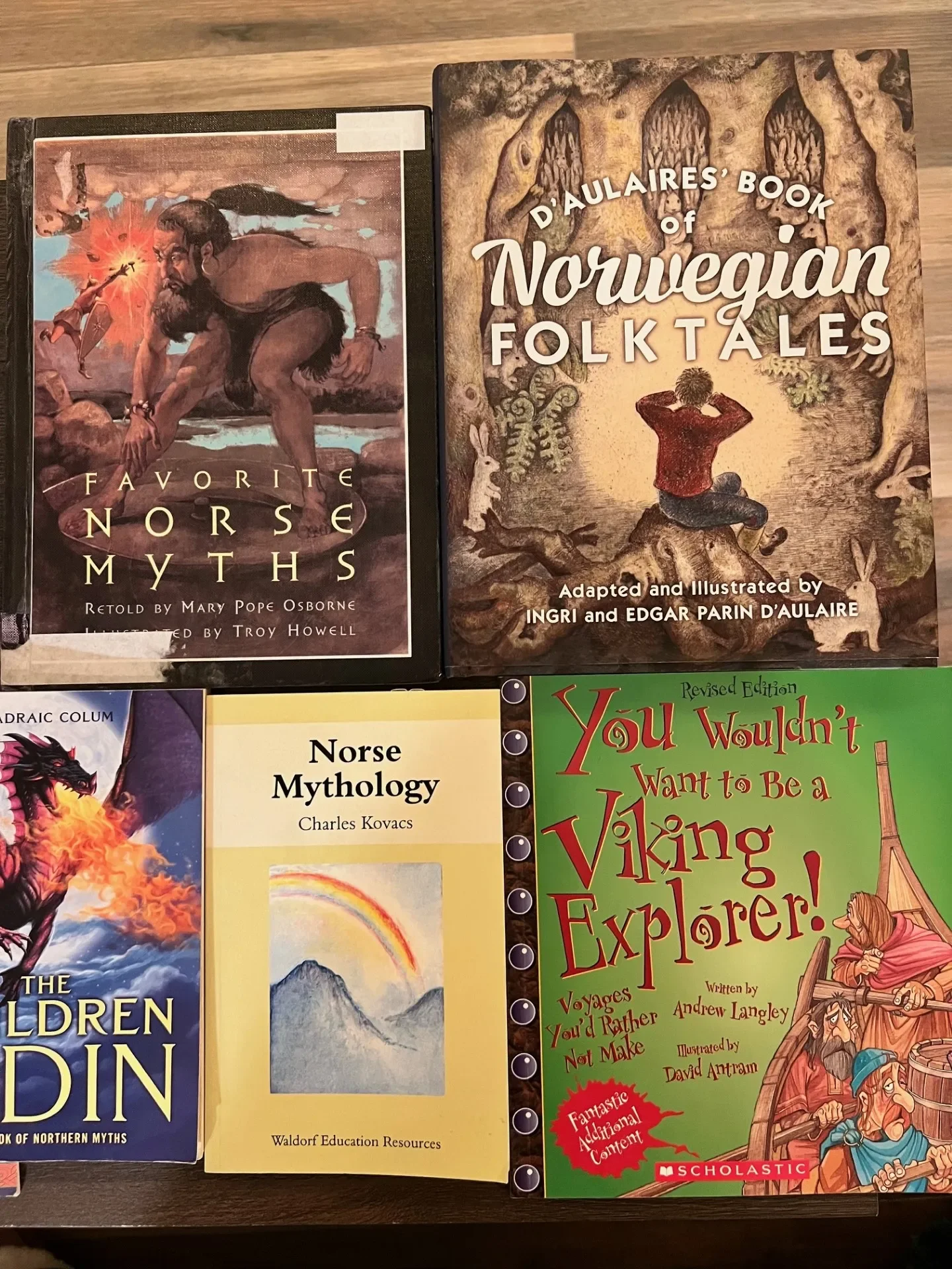 When we did our Norse Myths, I collected various books and put together my own block without the main lesson book. I sourced various books, but many ended up being similar and redundant. Only one book on Norse Myths is needed, while I ended up with four. One illustrated, one for upper elementary, one vintage and one curriculum based.