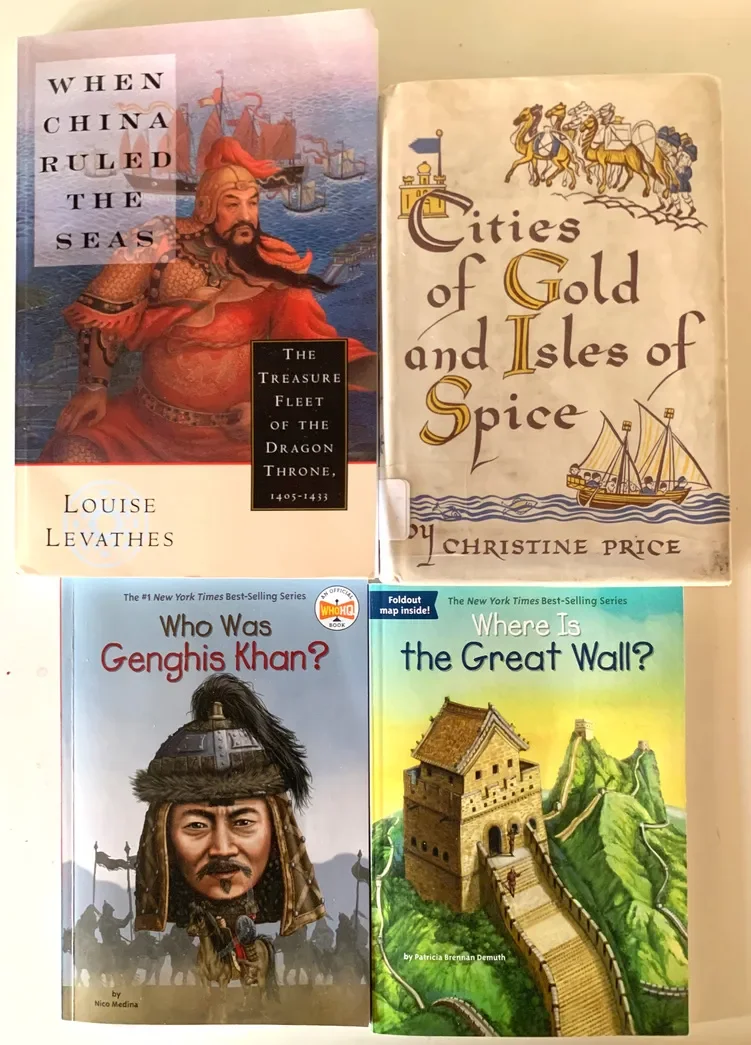 It’s not a history unit if you don’t talk about the people. After all history is His Story right? Her story is mixed in there, but is rarely the focus. While I have not made an effort to explore female historical figures, I think we do ourselves, our education and our children a disservice when we don’t include their stories. One book series I recently found that does a fair job exposing what it’s like to be a girl and a boy in history is the “If You Were Me and Lived in…Ancient China” by Carole P. Roman. There are several in this series and what I like is seeing the difference in what kind of life you would have depending on whether you were a girl or a boy, or woman or man, or rich or poor. For our Ancient China and Silk Road unit, we did a mini explorative unit on Genghis Khan, Kublai Khan and Marco Polo. Other notable biographies specifically on Chinese figures would be ZhengHe, Xuanzang, and Confucius as well as emperors from the different dynasties.