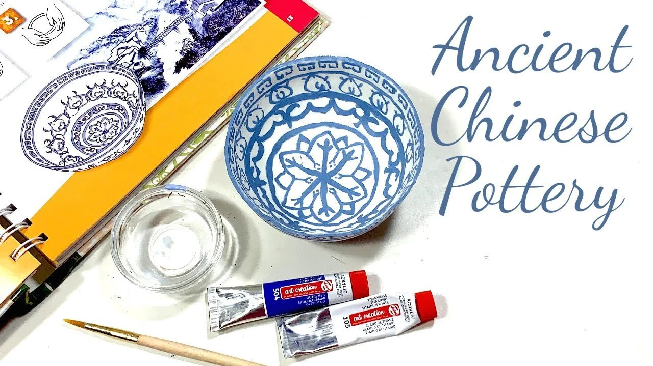 Spoiler alert: This project was a success and it turned out 100 times better than I expected! I can’t believe we made stunning faux Chinese Porcelain from the Ming Dynasty using Sculpey Soft Oven Bake Clay and acrylic paints. Instead of forming a bowl the way the book Lucky Bamboo Crafts by Jennifer DeCristoforo, I shaped it into a small oven safe bowl. I wasn’t sure it would work to bake the clay in the bowl and have the bowl release, so I tried two other methods: I laid the clay over the outside of a smaller bowl and with the third, I lifted the clay out before baking.