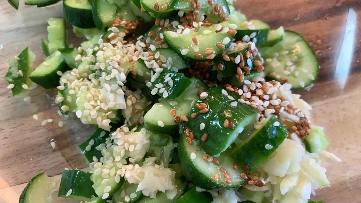 Smashed Cucumber Salad | Garlic and Sesame Seeds