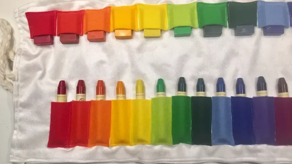 I love block crayons because they are not easily snapped or broken. They just wear down to little blocks, but one thing I don't like is when other crayons rub off onto the crayons. Then when the child goes to draw something, multiple colors comes off of one block. To remedy this problem, a crayon case is a good solution.