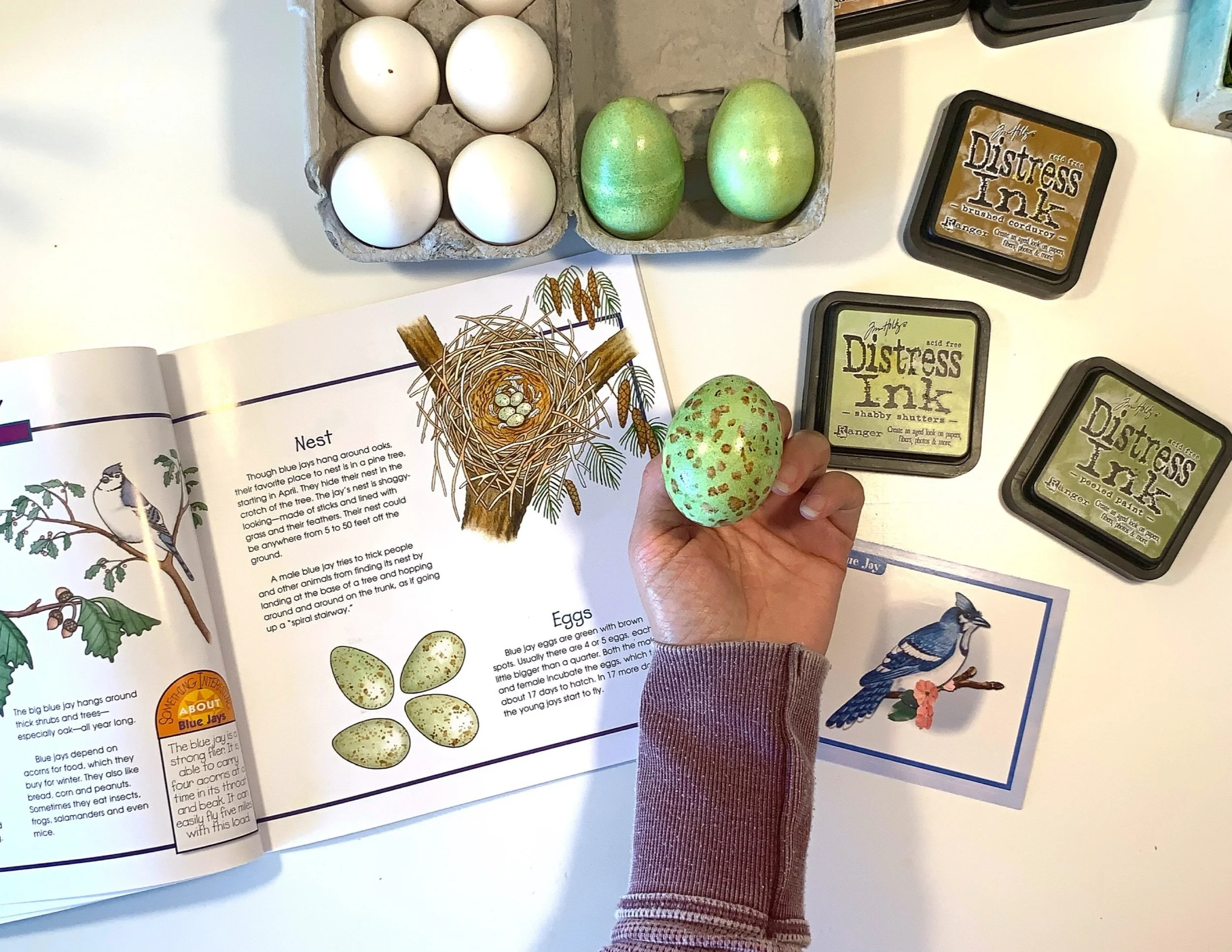 While reading the book Birds, Nests and Eggs by Mel Boring, I had a moment of inspiration and thought it would be a fabulous hands-on project to create egg replicas of the birds we learned about in the book using chicken eggs.