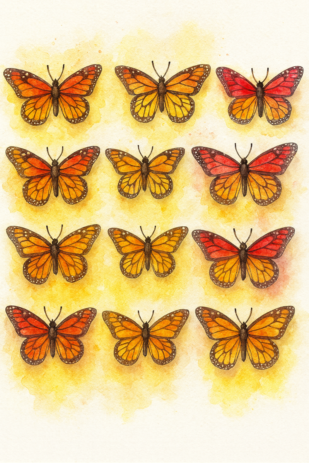 These monarch butterflies look so real, from a distance, you would think they were. We didn’t intend to make so many. We just needed a few for a Life Cycle of a Butterfly project, but we (er, I mean I) got carried away and made about 20 of them! That’s okay, I have lots of ideas on what to do with the extras. When folded in half, and glued on a twig, they make the perfect embellishment for a card. Or take a bundle of twigs with butterflies scattered about for a stunning centerpiece. You can see the other project we’re using these butterflies with by checking the playlist below.