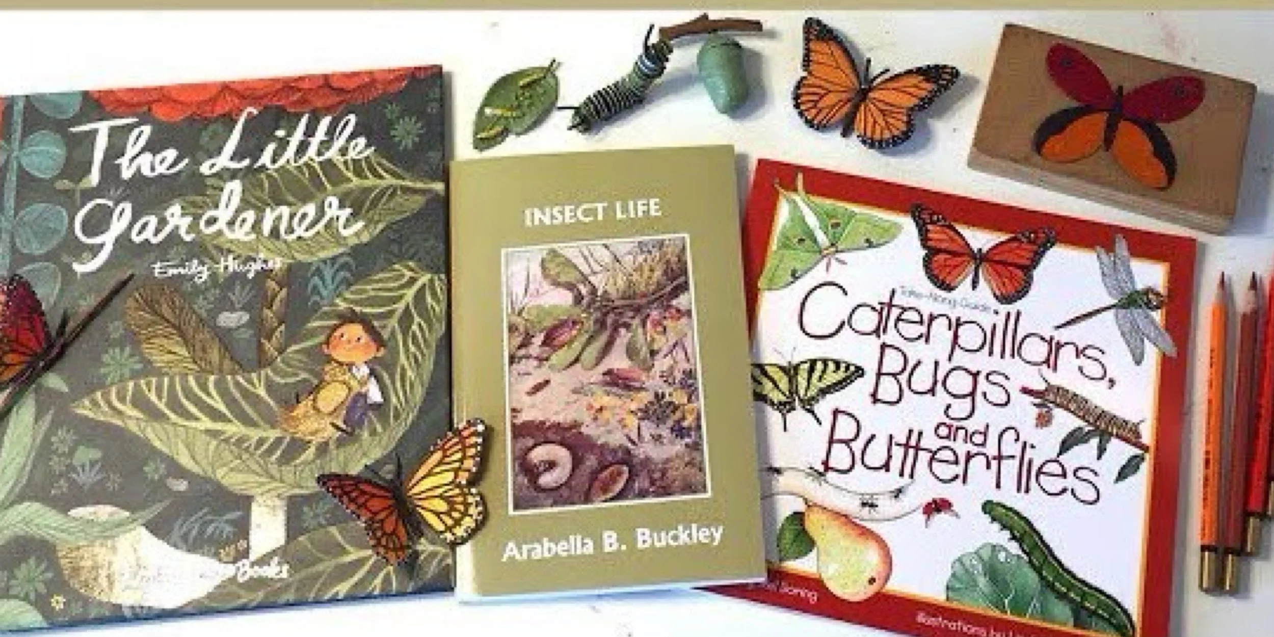 The study of butterflies is a wonderful spring activity. Watching the metamorphic change from chrysalis to butterfly mirrors the changes happening in nature at this time of year. What’s wonderful about making a unit study in a homeschool setting is that it will serve multiple ages at the same time. I love including picture books into our unit studies, especially non-fiction illustrated books. Everyone delights in listening to stories or reading living books. Including these resources into a unit study, supports the younger students with delightful stories and illustrations to look at, yet still being enjoyable and educational for older students. And the nonfiction, illustrated books serves as content for the older children while the younger children play and listen to the lesson. My older students would do written and illustrated work for the lessons, whereas my younger students may just do hands-on projects. This worked well for everyone and was a great opportunity for family learning.