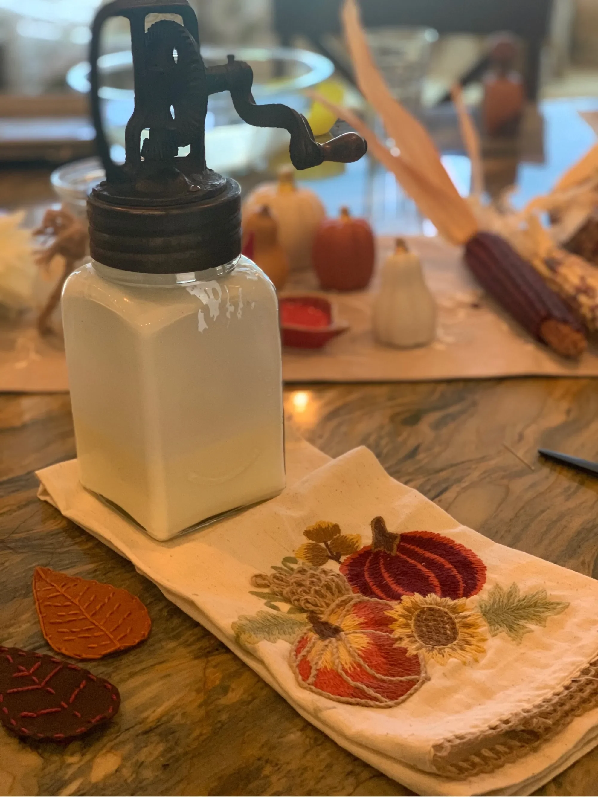 The food was almost done, so I filled my antique butter churn with heavy cream so the kids could crank the handle and turn it into butter for our sweet potatoes & corn. After 20 minutes, and a lot of noisy cranking, we still didn’t have butter. And one by one each person opened the fridge and cut a piece of butter for themselves to have over their hot corn and potatoes. After chilling the whole churn with the cream inside while we ate, we took it out & churned and churned and only got as far as whipped cream 😐