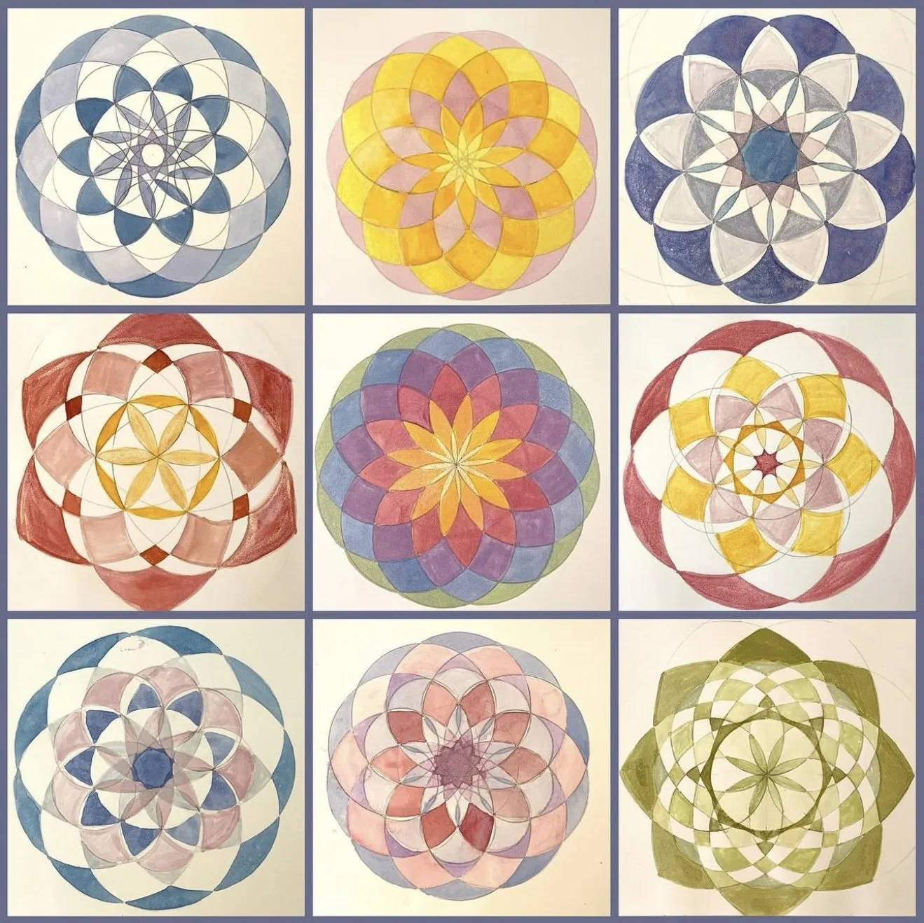 And it’s a wrap! We concluded one part of our geometry unit. We used the book Drawing Circle Images by Musigfi Studio and completed all 10 fold symmetry projects. I thoroughly enjoyed this part of our unit and while we still aim to continue, we’ve pulled out our Middle Ages History Unit as well. So we are going to attempt two main lesson blocks at the same time. We have work to finish from last year’s history unit before exploring a new unit: The Silk Road. For this geometry project, we used a compass and a ruler, 90lb. hot press watercolor paper by Fabriano and Distress Inks in a rainbow of colors. Tutorials and live lessons will be available on YouTube in the new year. I’ve got a bit of a backlog of videos and I’m trying to make my way through them in a chronological way. Check out the Instagram post here.