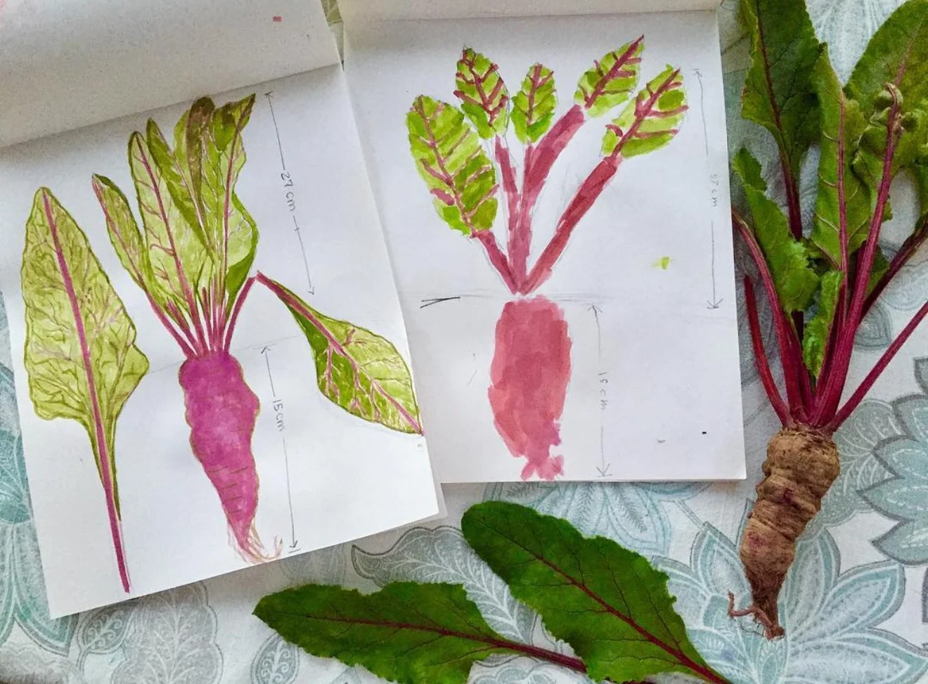 We are working through the book Math In The Garden. To see the lesson we are working on, swipe left. This lesson is on the ratio between roots and shoots. That's a drawing of a beet we harvested today. It got long and deformed. This is one awesome book! I highly recommend it. We've now completed three activities from the book and aim to do more. Each lesson has many activities and supplements, so it can be varied and explored. So far, we've kept it simple, but you could easily dive into each lesson and take a week on it doing each activity within the lesson. The instructions are easy to follow, the illustrations are delightful and helpful to understanding the lesson, and content is superb. It's a treasure for any homeschool or classroom library. See the Post on Instagram. This is How to make the garden journal video. Math in the Garden Playlist. Waldorf Botany Main lesson block. Math in the Garden used to be available at Acorn Naturalist.