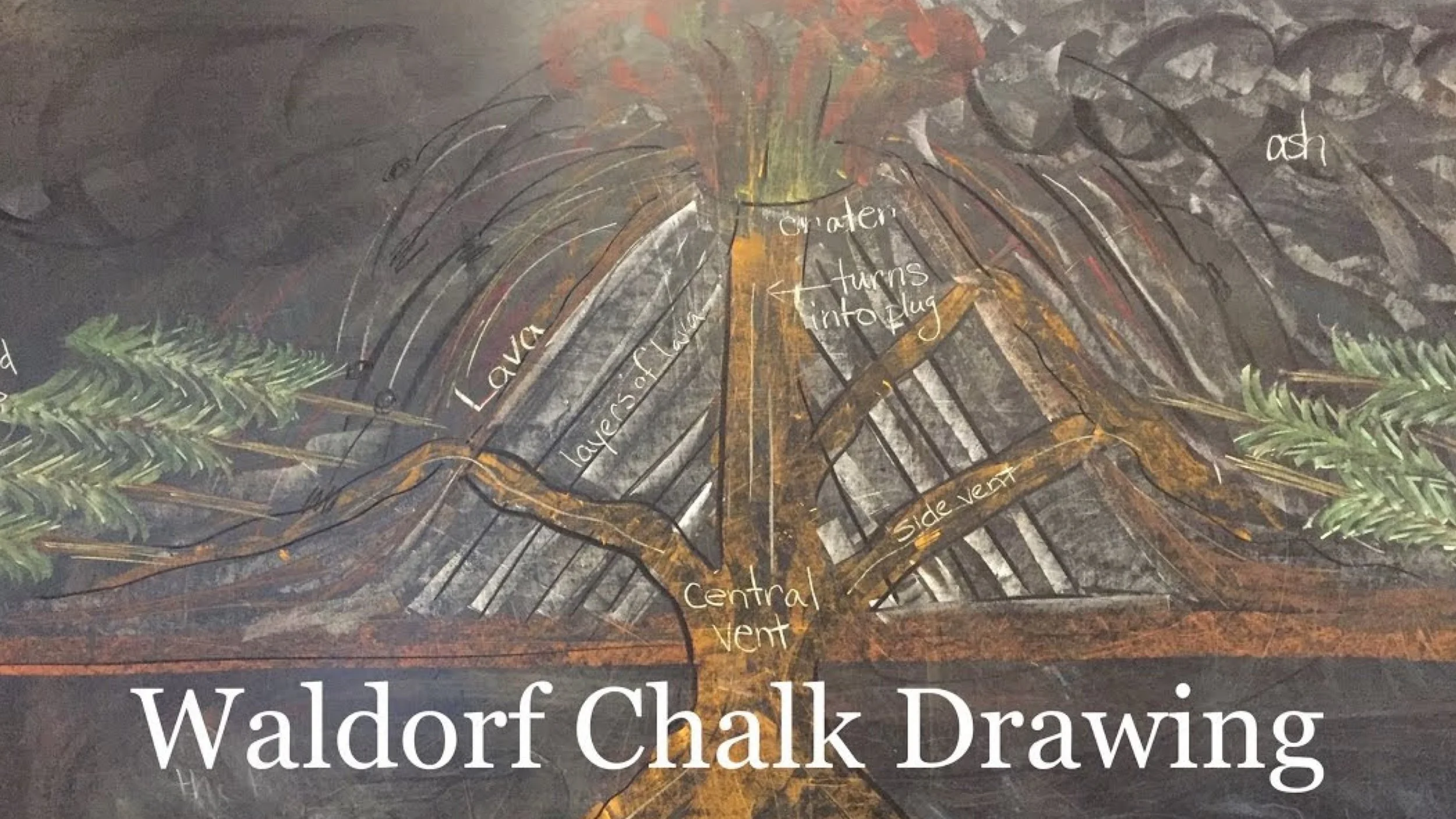 This chalk drawing took about 20 minutes to make. Chalk drawings remain on the chalkboard for either the whole unit or for a few days to a week depending on the lessons.This drawing will be copied into the children's main lesson book or into a geology lapbook.