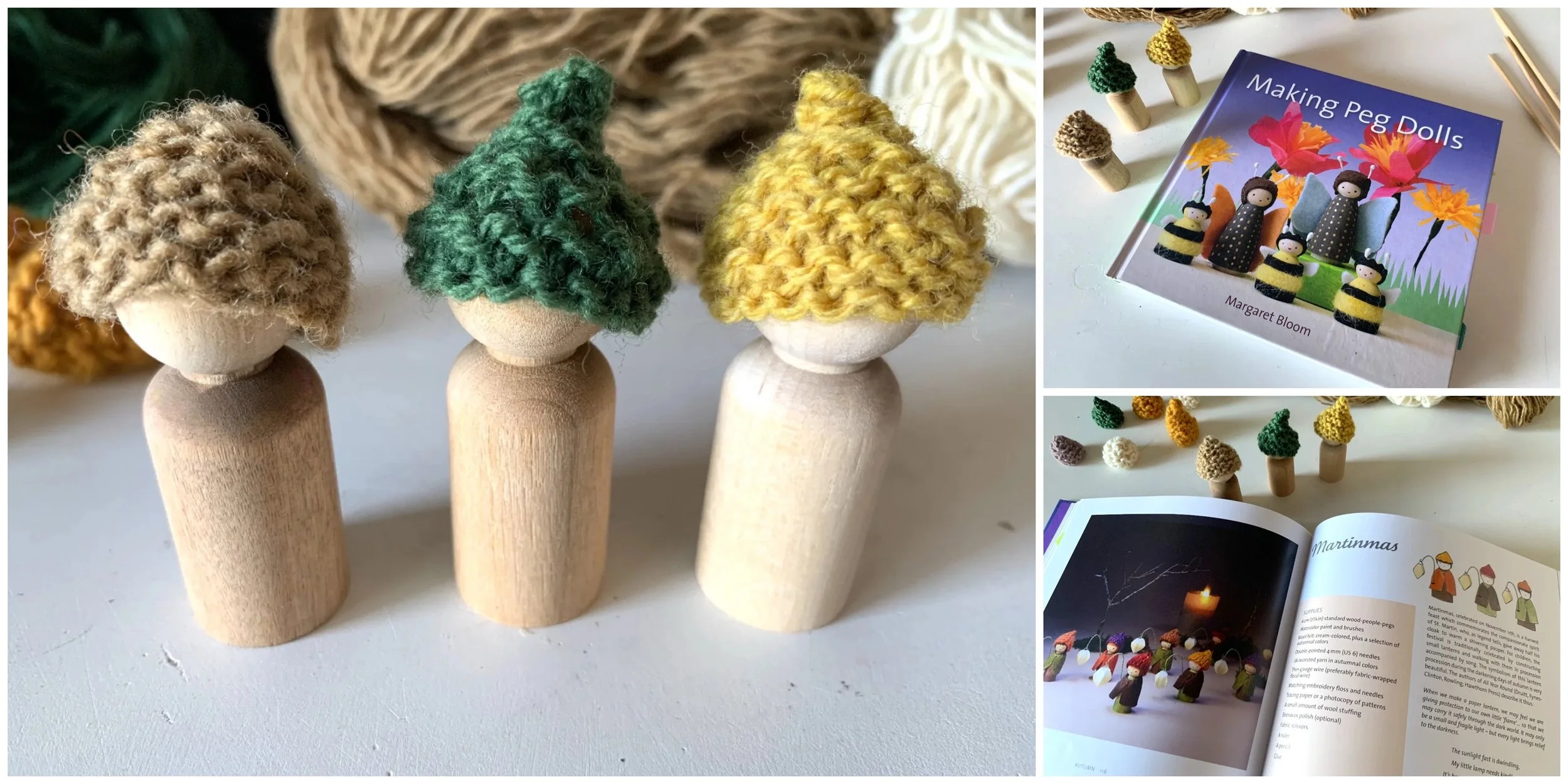 In this slow tutorial, I walk you through the basics of knitting so you can knit a hat or beanie for a peg doll. I have three patterns to share with you inspired by the pattern in the book Making Peg Dolls by Margaret Bloom on the Martinmas peg doll tutorial. We have gotten so much inspiration from this book.