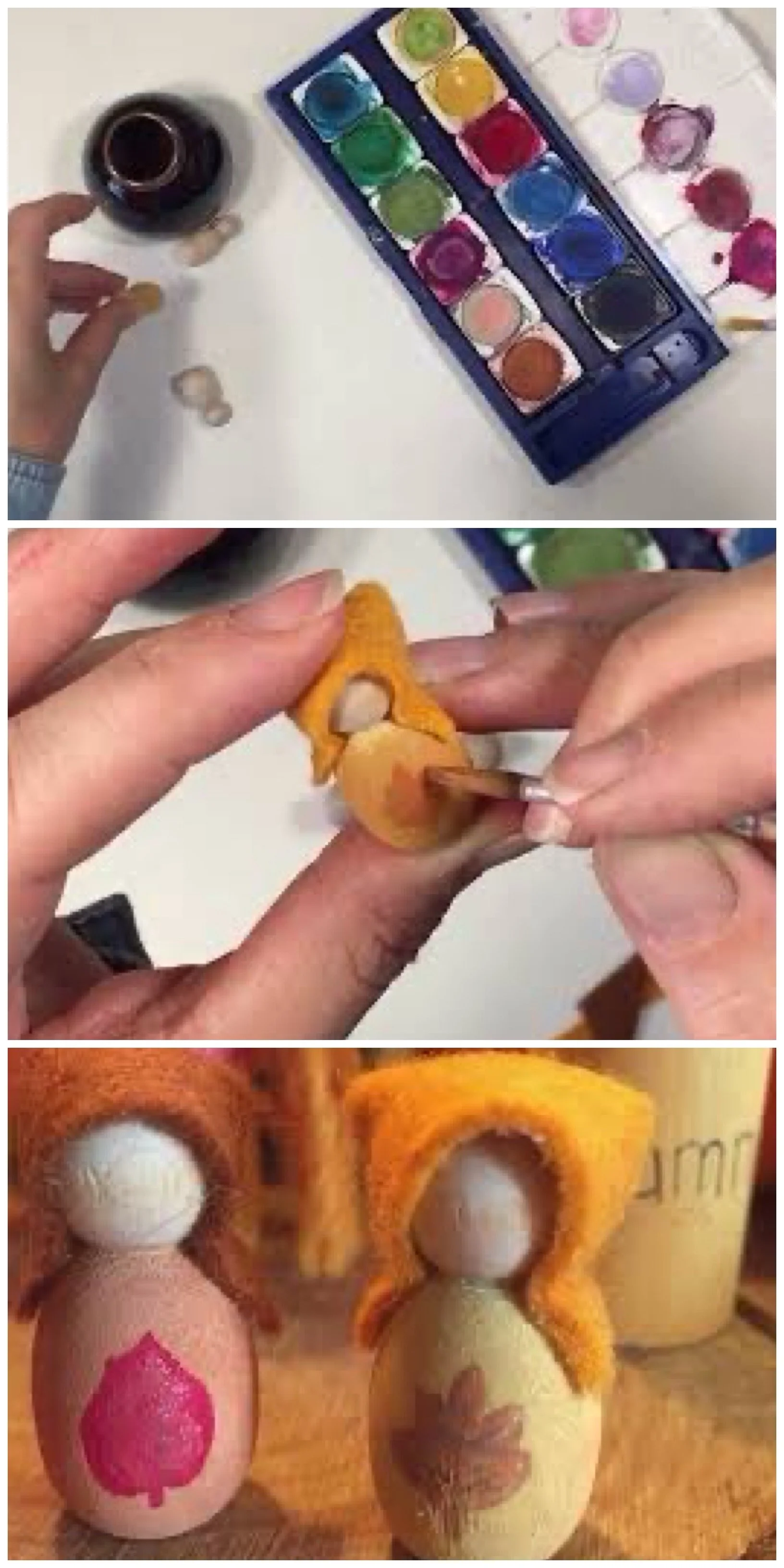 If peg dolls weren’t cute enough, they go and make these tiny bunting babies! They are adorable no matter how you make them. This set if for our nature table in our homeschool room. They were easy to make and are perfect for using up scraps. You can find the bunting baby peg dolls at A Child’s Dream. For this project, I used Lyra watercolor paints, and the gorgeous fall Holland Felt pack.