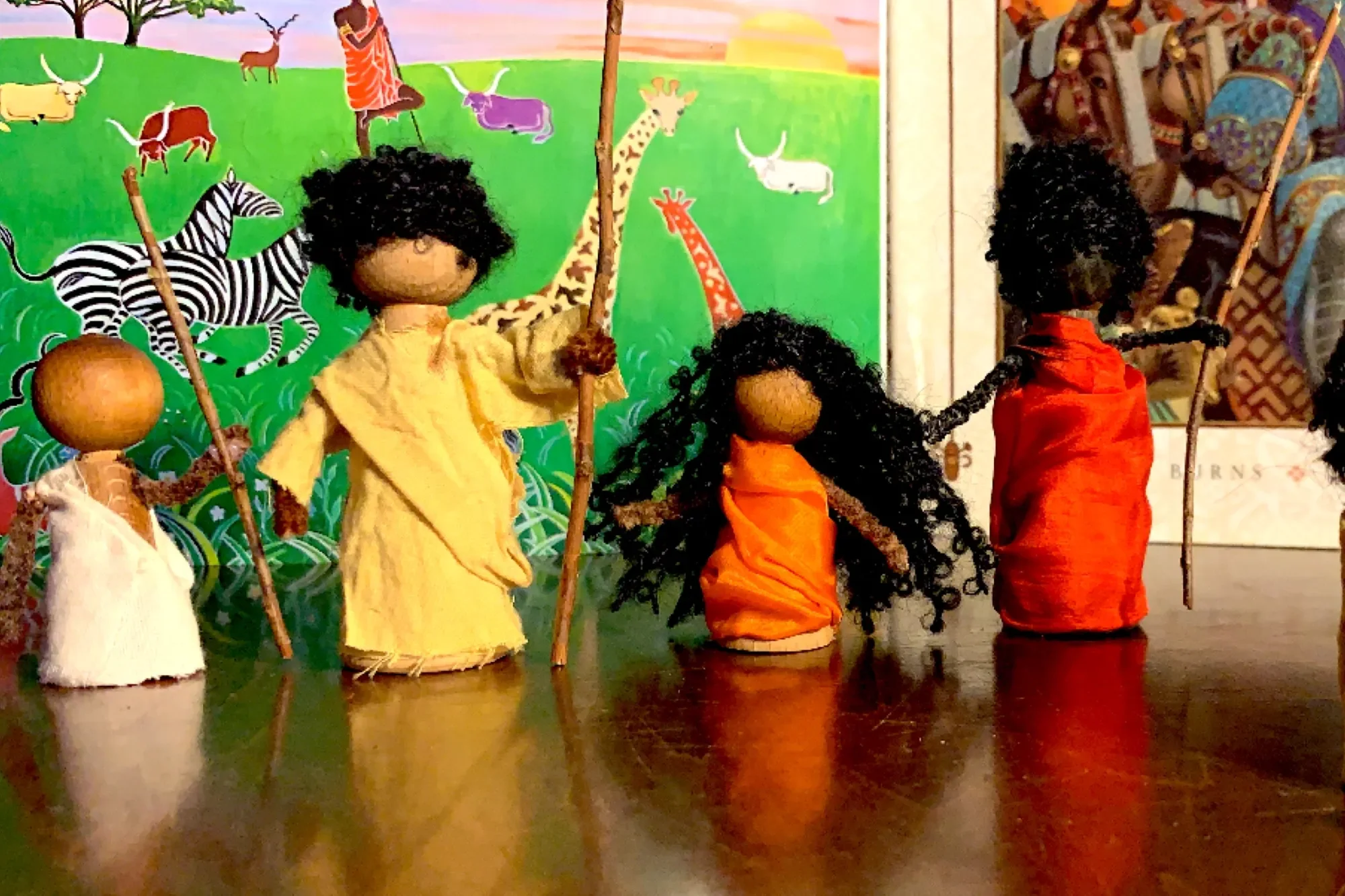 For our West Africa main lesson block spanning the years 900-1400 and the empires of Mali, Ghana and Songhai, we did several projects, cooked regional recipes and read books. While these peg dolls don’t represent West African tribes of Mali, Songhai and Ghana, they are being included as we added books from other parts of Africa into this unit.