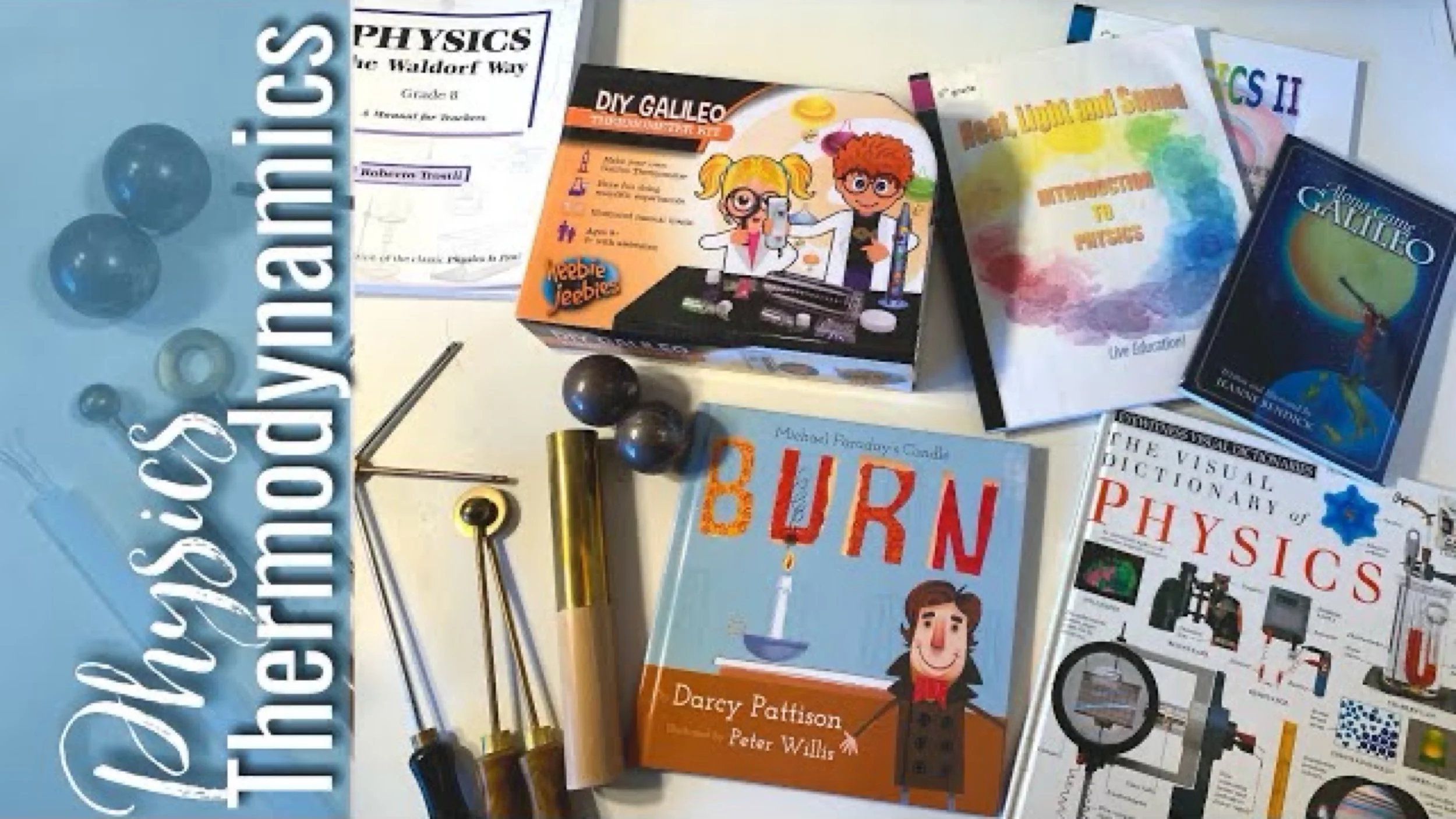 Have you watched a candle burn? It’s glowing light is one beautiful sight we can enjoy, and if you are looking at it through science colored glasses then you’ll see so much more! In our thermodynamics Physics lessons during our main lesson block, we are going to explore heat transfer, burning, expansion and more. We took a little detour with these materials and included lenses and optics and telescopes as well which is a great call back to our optics lessons. The biographies we focused on were on Faraday and Galileo. After putting this video together, I recognized I could have used more resources. Since then, I’ve added a few more materials to this unit on Heat and Thermodynamics.