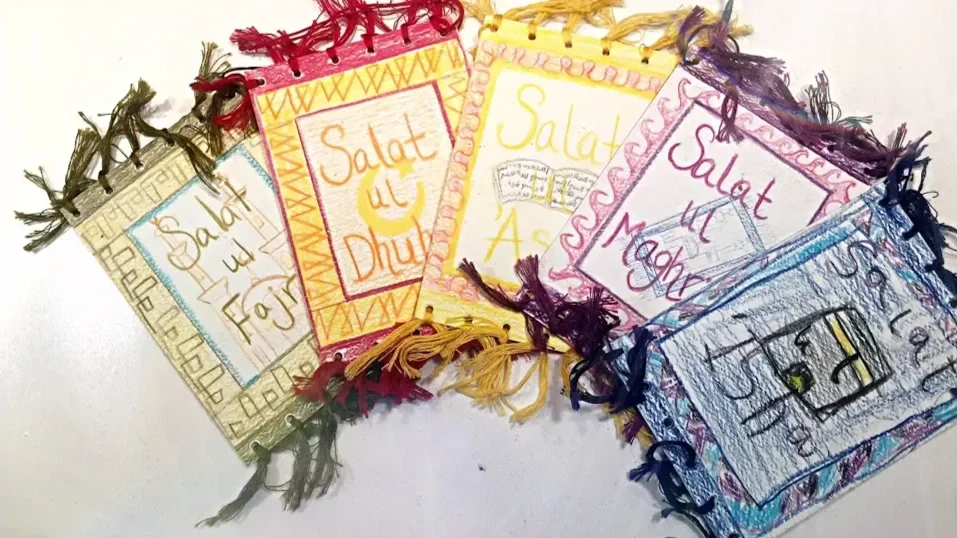 In each pocket you can add cards that indicate how many sunnah ruka are with each sunnah prayer, or you can add dua cards.