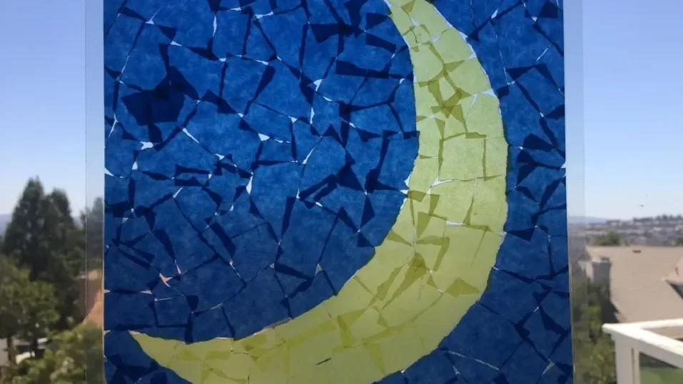 This is a super easy project to do with kids during Ramadan or anytime of year. You can use anything as a template and the templates are reusable! Just place contact paper sticky side up over you template and secure both with tape so they don't slide around. Next just fill in the space with transparent paper pieces (we tore ours up into 1 inch pieces or smaller).