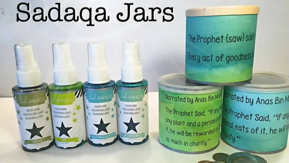 Upcycling projects are my favorite kind. Here's one that makes use of my kids' left over watercolor projects and old empty jars with plastic lids. You'll need a printer for this project or you can hand write a quote or hadith. Supplies for this project can be found at local crafts stores: watercolor paper or smooth cardstock, watercolors or Color Shine Spray, small cans or jars, lids (optional), measuring tape and permanent double stick adhesive.