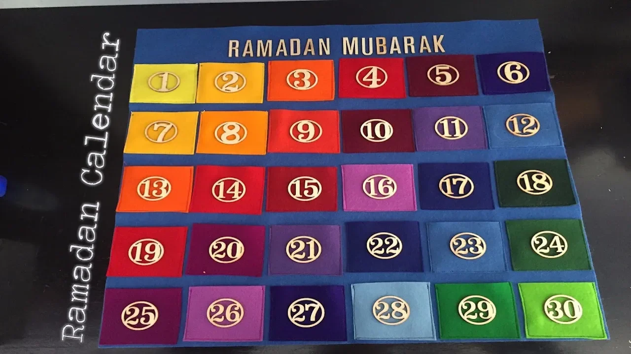 Making a Ramadan Calendar for you and your kids is a great way to track this blessed month. There are so many different ways to do it, and this is just one color, crafty method. As the video cut out before the project was completed, I don't show how the calendar was hung. I purchased a 1/8" or 1/4" dowel from Michaels and cut it down to about 19 inches. I sewed a casing for it and fitting the dowel through it. I strung twine from the ends of the dowels and hung it on the wall using a Command hook.