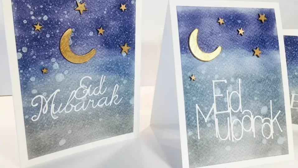 With a few craft supplies, you can make some breathtakingly beautiful cards. I admit these Eid Mubarak cards turned out better than I thought. This tutorial will show you a step by step process on how to achieve the ombre effect as well as you give a couple alternatives for titling this card.