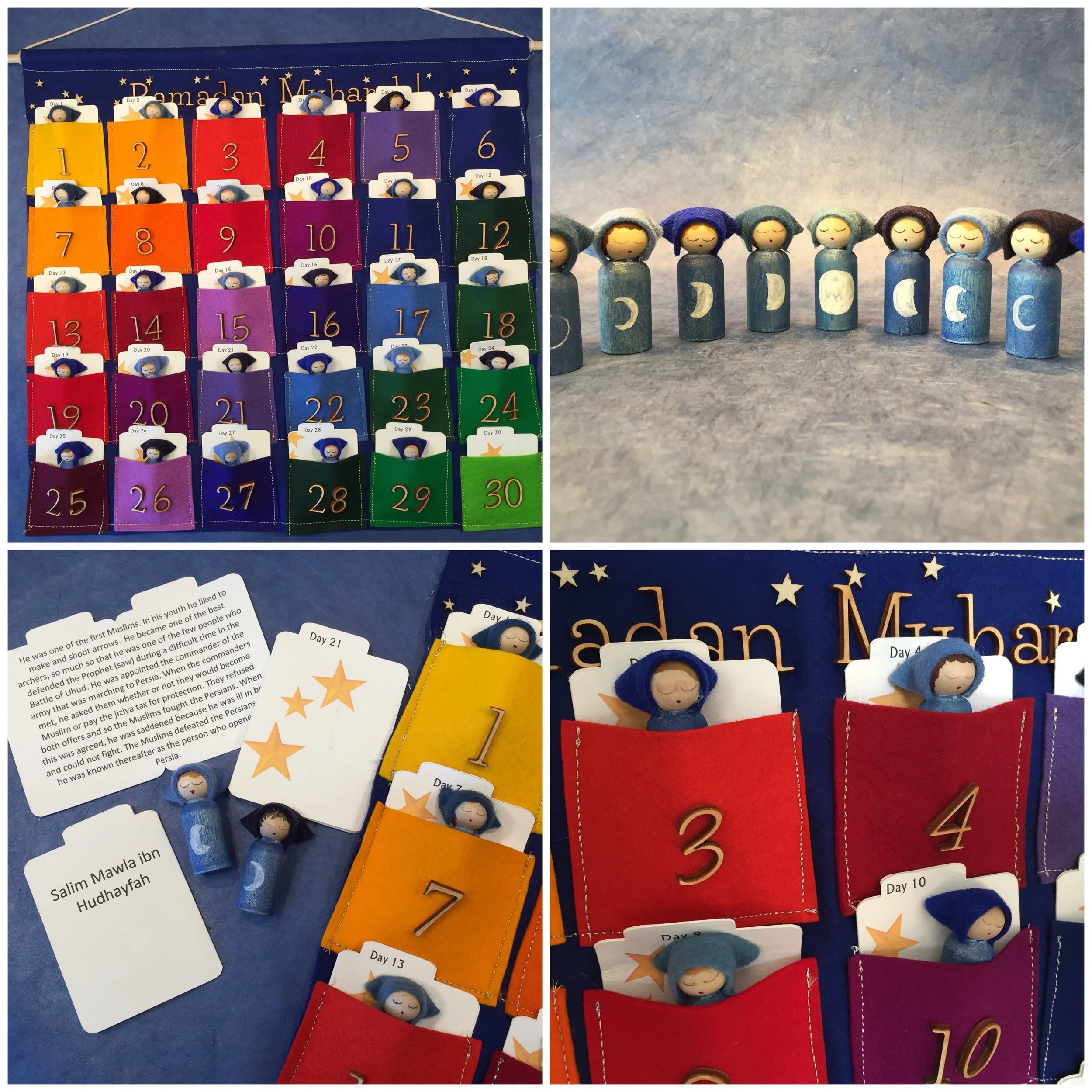 Every year Ramadan comes upon as sooner than the year before. That's because our Islamic months are based on the lunar calendar while our Gregorian calendar is based on the planet's revolution around the sun. And each year I plan to be prepared for Ramadan and each year it always seems like I'm stumbling into the month only half prepared. Over the years, I have gotten better about how I want to enjoy this month and reap its benefits. Part of that is enjoying the traditions we have loved as a family which we maintain year after year with some innovations and creative inspirations. We now have a Ramadan Calendar we use every year with pockets to store our Lunar Peg Dolls and Quiz Cards of the Companions. We also have our Phases of the Moon wooden display, an assortment of books, and decorations we can easily pull out and use. We have the Biography of the Prophet (saw) that we now read every Ramadan and special food we seem to only have during Ramadan. Here you'll find a collection of the things that make Ramadan special to us as a family and especially for the children.