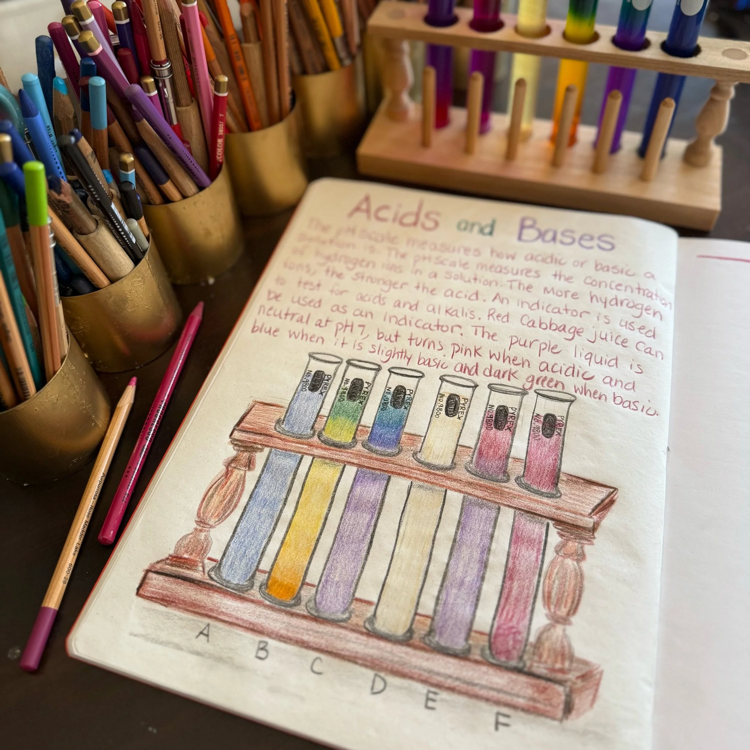 For this Chemistry Block, we worked through the Live Education Waldorf curriculum for many of our demonstrations and lessons while including the book Chemistry the Waldorf Way for addition demonstrations. We documented each demonstration and lesson including the written narrations or lab reports.