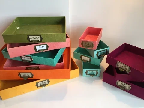 Upcycle any box! In this double tutorial, I make some mistakes. Watch to see how you can remedy some problems associated to cover boxes in this upcycling tutorial. Make sure it's well made and sturdy. All you'll need for this project is lokta paper, spray adhesive, scissors, label pulls, and metal brads.