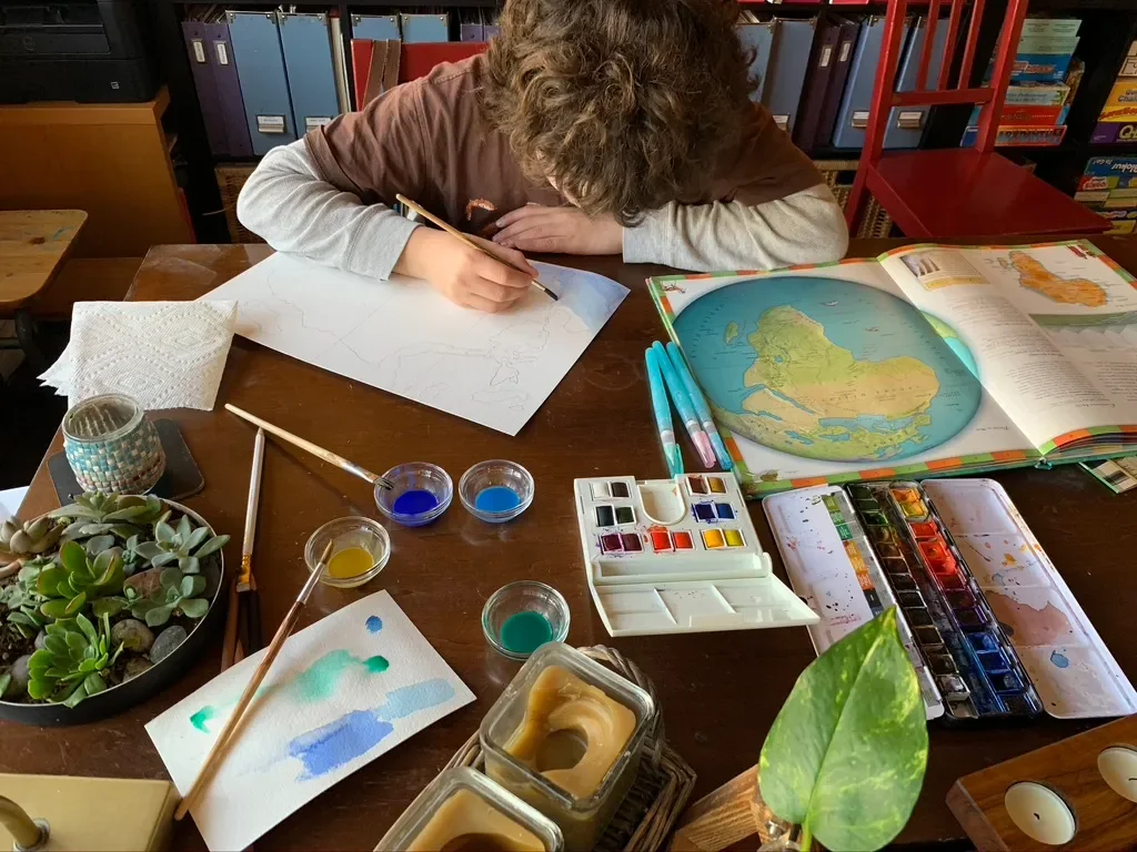 For this project, we used Fabriano cold press 90 lb. watercolor paper measuring 11"x15". We used our Children's World Atlas and 10 Days In Africa as resource guides and used our Winsor Newton watercolors to paint our map. We also used a fountain pen to label locations and geographical areas on the map. While the project turned out beautiful in the end, my 13-year-old son was hasty when labeling the map, so I had him to the project again. He wasn't happy about it, but I insisted that my his age, I expected that correct spelling and grammar were necessary for this project especially since I had clearly reminded him of my expectations. In a situation like this, you have to balance the emotions of the student and the goal of the project. I could have easily let it go, but for this project, we weren't just experiencing the spirit of the project, we were striving for precision and excellence.